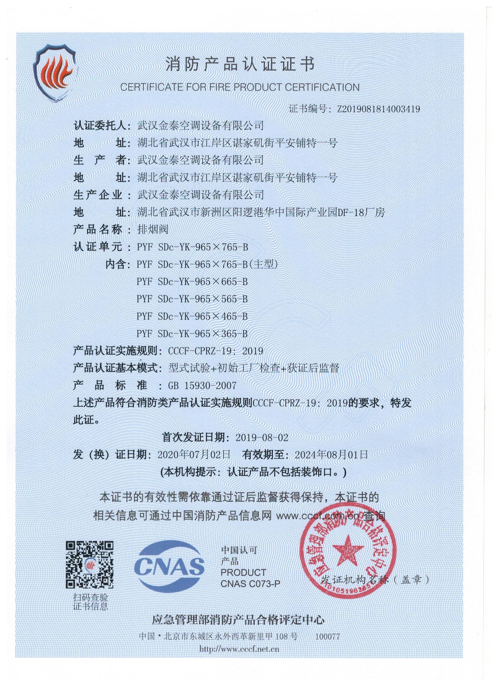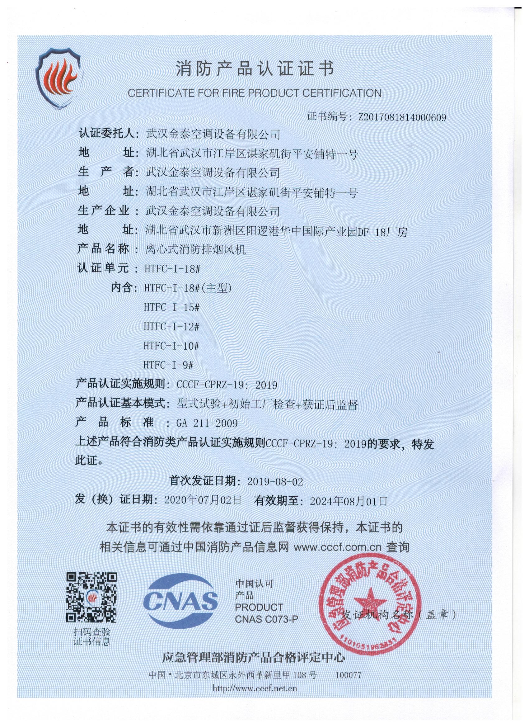 武漢金泰空調(diào)設(shè)備有限公司 是國內(nèi)長期專注于民用風(fēng)機(jī)、工業(yè)風(fēng)機(jī)領(lǐng)域的標(biāo)桿企業(yè):專業(yè)生產(chǎn)消防排煙風(fēng)機(jī)系列、排煙防火閥系列、一般通風(fēng)機(jī)系列(軸流式、離心式、屋頂式、壁式、隧道式、射流式)、風(fēng)口、風(fēng)管等消防及通風(fēng)設(shè)備。產(chǎn)品經(jīng)公安部消防產(chǎn)品合格評(píng)定中心評(píng)定符合消防產(chǎn)品CCC標(biāo)準(zhǔn);經(jīng)中國合格評(píng)定國家認(rèn)可委員會(huì)認(rèn)證的檢驗(yàn)所檢驗(yàn)合格;經(jīng)國家防火建材質(zhì)量監(jiān)督檢驗(yàn)中心(四川中心)火燒實(shí)驗(yàn),耐火性能達(dá)標(biāo)。